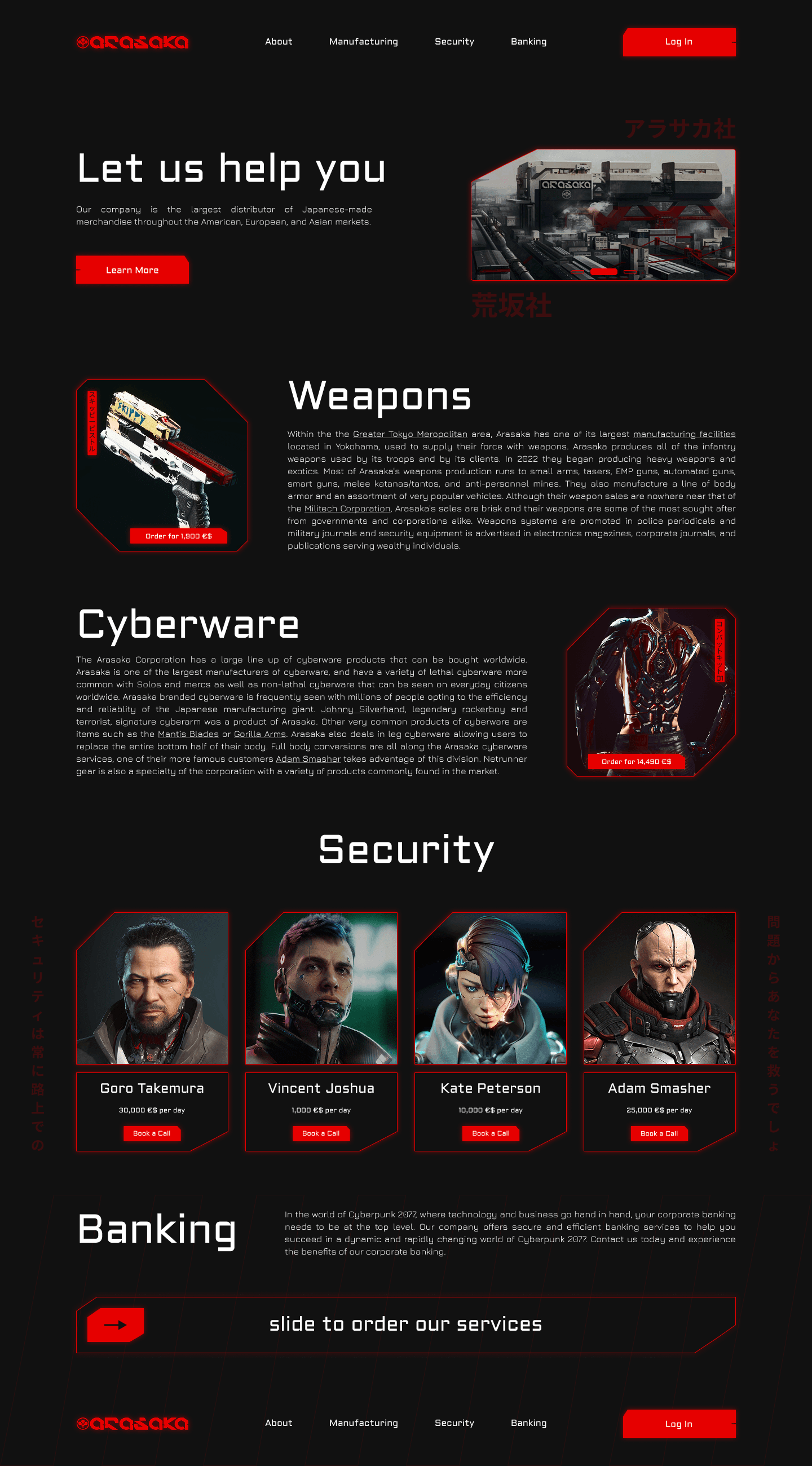 Before starting the design process, I needed to understand the visual style of the Cyberpunk 2077 universe and the identity of Arasaka as a corporation. This included: